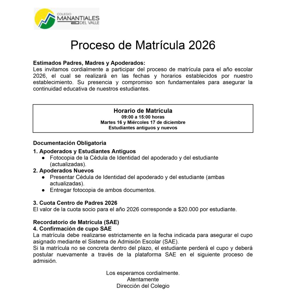 «Nuestro colegio Manantiales de Elqui, en virtud de los excelentes resultados obtenidos por el actual…